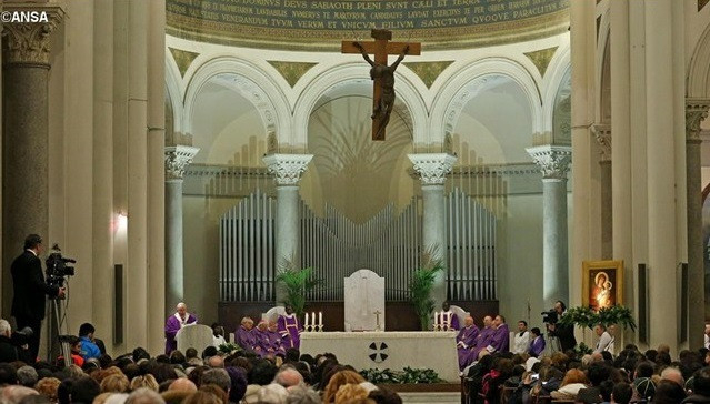 Ferenc pápa március 7-én este hat órakor szentmisét mutatott be Rómában, a Via Appia Nuova mentén fekvő Mindenszentek plébániatemplomban, ahol ötven évvel ezelőtt VI. Pál pápa először végezte a zsinati megújulás szerinti új szertartást. A Vatikáni Rádió tudósítását közöljük.