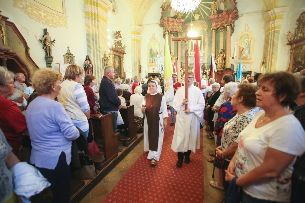 A szentmise után a mintegy hatvanhat helyszínről érkezett zarándokok szentségi körmenetre indultak a templom körül.