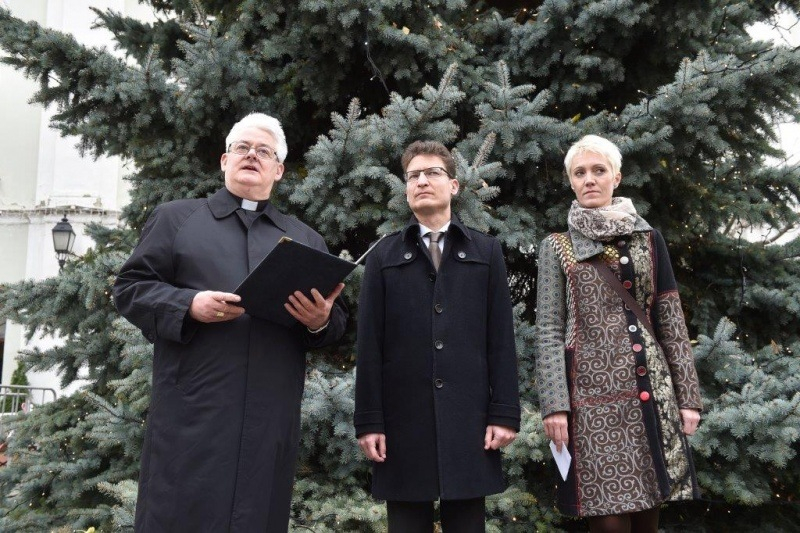 A város polgármestere, Cser-Palkovics András köszönetet mondott az egyházmegyének, hogy a Püspöki Palota udvarának megnyitásával, a fényüzenetekkel és megannyi programmal segíti a fehérváriakat ahhoz, hogy lelkileg felkészülhessenek az ünnepre. A város is nagyon sok programot szervez az adventi időszakban és megújult infrastruktúrával várja az érdeklődőket. Új faházak és fények kerültek a belvárosba, illetve az új Várkörúton is lesznek idén karácsonyi fények. Változás lesz továbbá az is, hogy a Városház téri színpad a Hiemer-ház előtt lesz. Minden adott lesz ahhoz a városban, hogy a családok, barátok megállhassanak, beszélgessenek, és lélekben fel tudjanak készülni karácsonyra. Bízom abban, hogy a közösség egy kicsit jobban összejön ilyenkor és jobban figyelünk egymásra. Azonban minden külsőségnek csak akkor van értelme, ha mi emberek megtöltjük tartalommal, hogy arról szóljon az ünnep, aminek a szeretet jegyében szólnia kell – mondta.