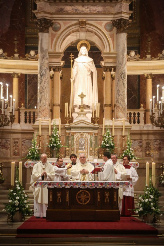 A latin nyelvű szentmisén koncelebrált Erdő Péter bíboros, Veres András győri megyéspüspök, a Magyar Katolikus Püspöki Konferencia (MKPK) elnöke, a konferencia több tagja és számos paptestvér. Jelen voltak a szerzetesrendek és a diplomáciai testületek képviselői.