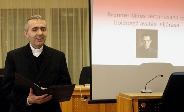 Császár István e gondolatok után a boldoggáavatási eljárás folyamatát ismertette. Kiemelte: az eljárás, amely vértanú halálát követő legkevesebb öt év múlva indul, a hívek jelzésével kezdődik, vagyis az életszentség híre ez esetben elmaradhatatlan. A kezdeményező lehet szerzetesrend és magánszemély egyaránt. A rengeteg adatgyűjtés, tanúkihallgatás, fordítás, konzultáció, bizottsági ülés és egyéb tevékenység miatt húzódik el évekig egy-egy ilyen eljárás, melyben részt vesznek történeti, püspöki és teológus szakértők, püspökök, civilek és lelkipásztorok egyaránt. Brenner János boldoggá avatásával kapcsolatban jelenleg a teológus szakértők kijelentésére várnak, mely szerint a vértanú hősies fokban gyakorolta az erényeket.