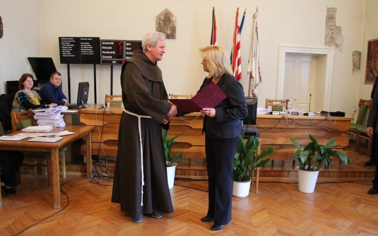 Pro Urbe díjjal tüntették ki Halmai Vilmos nyugalmazott ferences rendi szerzetes tanárt május 19-én Esztergomban. Az elismerést a képviselő-testületi ülésen vehette át Romanek Etelka polgármestertől.