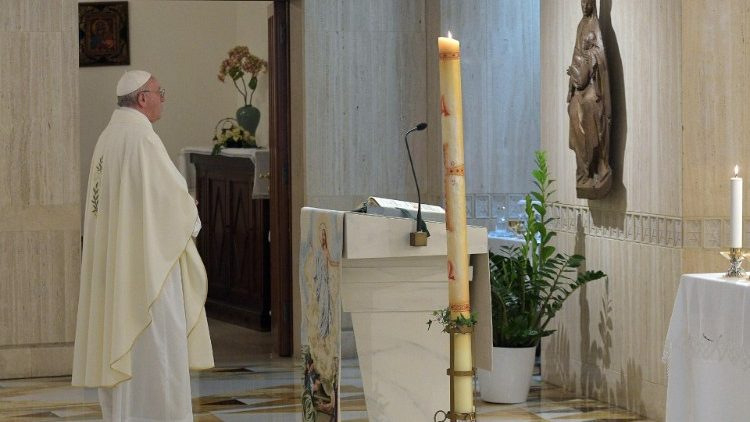 Miként lehet összebékíteni a gyötrődést és az üldöztetést, amelyet Szent Pál elszenved a napi olvasmányban (ApCsel 14,19–28) szereplő történetben azzal a békével, amelyet a napi evangéliumban (Jn 14,27–31a) Jézus hagy a tanítványaira az utolsó vacsorán való búcsúzásakor: „Békét hagyok rátok, az én békémet adom nektek”? Ferenc pápa ebből a kérdésből indult ki szentbeszédében. Az üldöztetésekkel és gyötrődéssel teli élet békétlennek tűnik, de ezzel szemben a pápa emlékeztetett a boldogmondások (Mt 5,1–10) egyikére: „Boldogok, akik üldözést szenvednek az igazságért, mert övék a mennyek országa”. Jézus békéje és az üldöztetéssel, szenvedéssel teli élet összefér. Olyan béke ez, amely nagyon mélyen húzódik, sokkal mélyebben ezeknél a dolgoknál. Ezt a békét senki nem veheti el, egy ajándék, olyan, mint a tenger, amely a mélyben csendes, a felszínen hullámzik. Békében élni Jézussal azt jelenti, hogy bennünk van ez az érzés, amely minden próbatétel, nehézség, szenvedés idején velünk marad – hangsúlyozta Ferenc pápa.