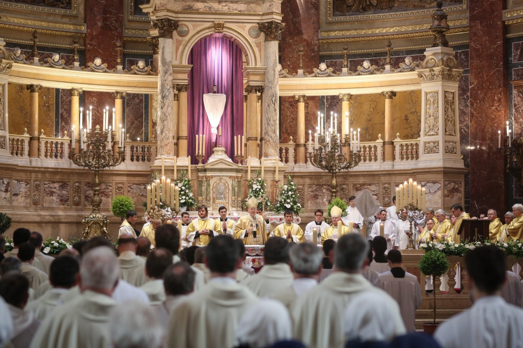 Nagycsütörtök délelőtt az olajszentelési szentmise vezeti be a szent három nap ünneplését. Erdő Péter bíboros az Esztergom-Budapesti Főegyházmegye papságával és az egyházmegye területén szolgáló szerzetes papokkal közösen mutatta be a szentmisét, melyen koncelebráltak Alberto Bottari de Castello apostoli nuncius, a főegyházmegye segédpüspökei, Snell György és Cserháti Ferenc, valamint teljes papsága, és együtt ünnepeltek a főegyházmegye diakónusai is.