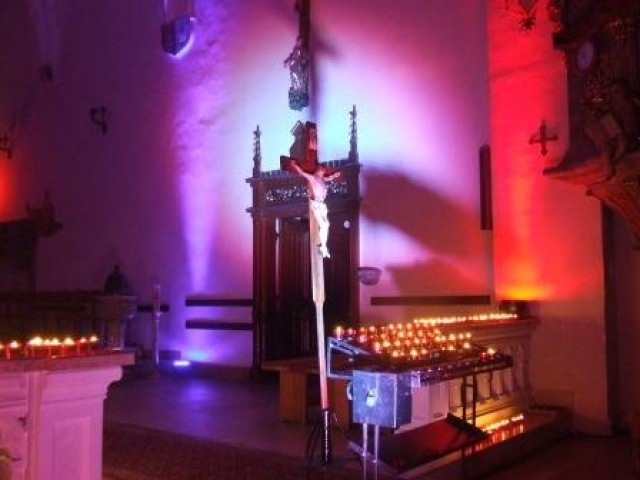 Bérmálkozók és ifjúsági csoportok tagjai a templom előtti téren mécsest osztogattak a járókelőknek, amit a templomban kihelyezett feszület előtt lehetett meggyújtani. A szentélyt új megvilágításba helyezték színes reflektorokkal, a kapukat kitárták, és gitárral kísért énekek segítették az elcsendesedést.