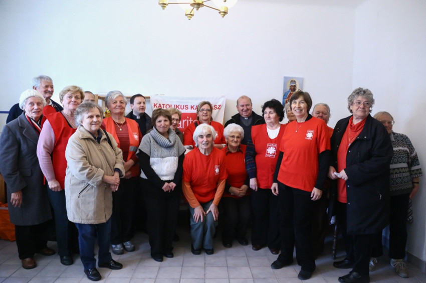A plébános röviden ismertette a katolikus segélyszervezet helyi csoportjának történetét: 1990-től működnek a városrészben, s az eltelt huszonöt esztendő alatt a rákosligeti plébánia hívei mellett más kerületek közösségei is bekapcsolódtak a segítő munkába, a Jóisten gondoskodó szeretetének közvetítésébe. Állandó épületük azonban nem volt, ezért az elmúlt negyedszázad során arra kényszerültek, hogy raktárukat és a rászorulók fogadására alkalmas helyiségüket időről időre új helyszínre költöztessék. József atya hangsúlyozta: nem kizárólag a rákosligetiek, de a XVII. kerület minden lakója előtt nyitva áll az ajtajuk, legyen katolikus vagy bármely más felekezet híve.